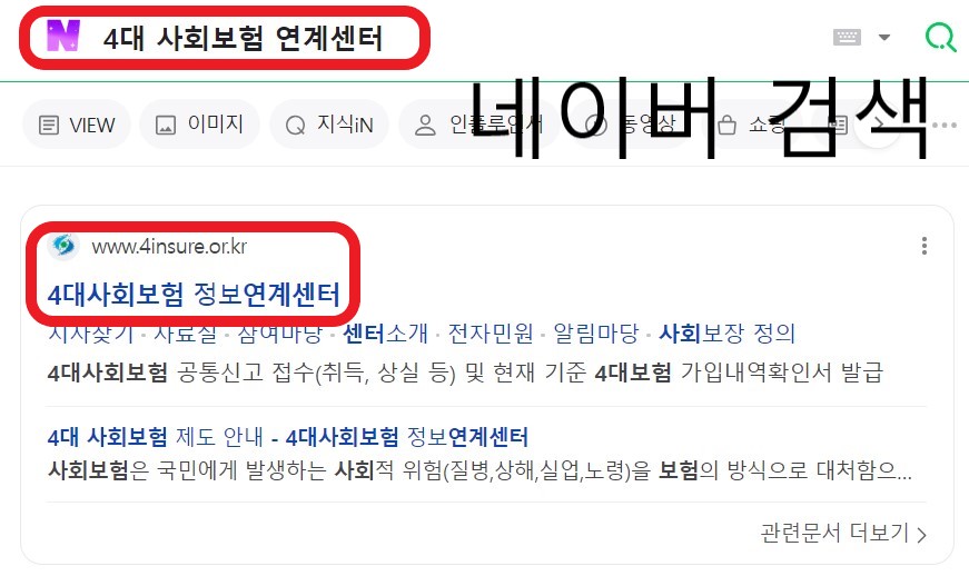 ▣ 4대 사회보험 정보연계센터를 검색하여 홈페이지에 접속합니다.