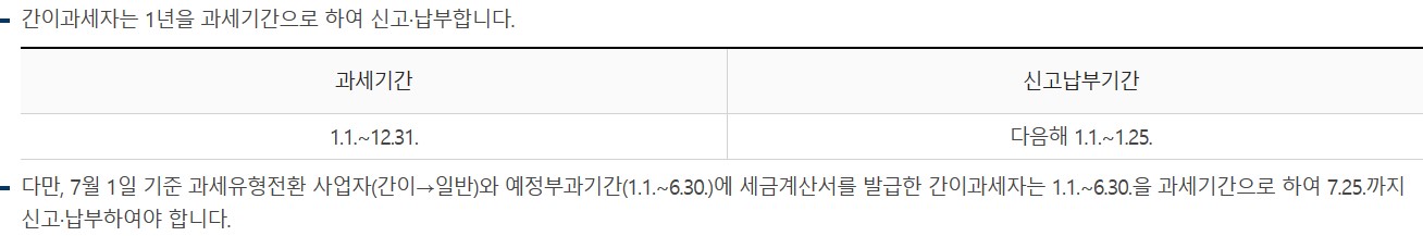 - 과세기간: 사업개시일로부터 그 날이 속하는 과세기간 종료일까지