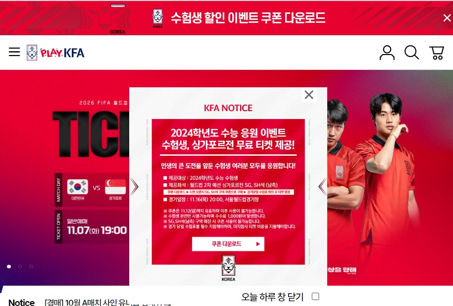 그리고 특별히 2024학년도 수능 응원 이벤트로 수험생은 싱가포르전 무료 티켓도 제공하고 있다고 하니 꼭 한번 도전해보시기 바랍니다.
