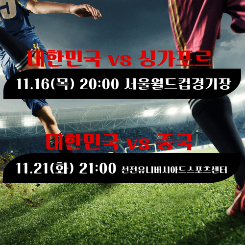 ● 11월 16일 (목) 저녁 8시 : 대한민국 vs 싱가포르 [서울월드컵경기장]